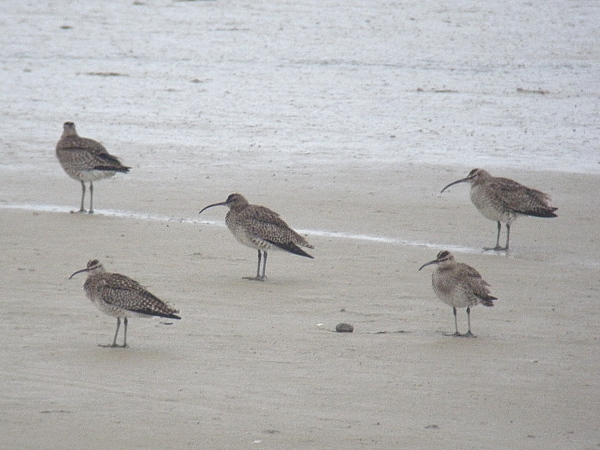 Sunday 29 April 2012. Heavy early morning rain prevented an early start and I got to Shoreham Harbour at 07:20. 2 Wheatears were by the Old Fort, keeping out of the wind. The end of the West Arm was rather exposed and it was hard to keep my telescope still so after 10 minutes of seeing little I relocated to Widewater seeking shelter by one of the beach huts. I gave up after a disappointing hour having seen 4 Fulmars, 20 Gannets and 9 Sandwich Terns flying east and one Swift coming in. A visit to the Adur late morning produced a colour-ringed Herring Gull. With the wind changing mid afternoon I returned to Shoreham Harbour and seawatched from 15.40-18.35. This was much better but still not 'busy'. I recorded the following flying east; 138 Fulmars (a very good count for here), 51 Gannets, 7 Common Scoter, 70 Bar-tailed Godwits, a Whimbrel (and 3W), 5 Pomarine Skuas (quite close at 17:33), 4 Arctic Skuas, 2 distant Bonxies, 19 Kittiwakes, 11 Sandwich Terms (with almost as many W), 3 Commic Terns and a Swift. 4 Purple Sandpipers were also present.