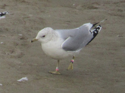 | this Common Gull's right leg is the interesting one, appearing to only have a pink ring in this image |