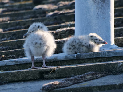 Friday 26 June. Megan and I took Cookie to Mill Hill where we saw 2 Swifts, a Red Kite, Buzzard, an early/late migrant Reed Warbler, 3 Whitethroats and a Mistle Thrush. Five Swifts were over the garden in the evening and the one adult Herring Gull and two chicks on the roof behind us.