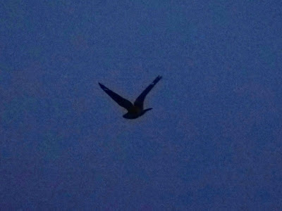 Tuesday 11 May. I joined Steve at Widewater and seawatched from 06:55-09:20 in a moderate SSE backing SSW wind. I saw a Brent Goose, 81 Common Scoter, Great Crested Grebe, 8 Sanderling, 2 first-summer Mediterranean Gulls, 16 Sandwich Terns, 2 pale-morph Arctic Skuas (together), an unidentified diver and 115 Gannets. All were flying east. I met Megan and Cookie at Harbour Way and we walked to the Adur Ferry Bridge and back along the boardwalk to the Fort seeing 3 Oystercatchers, Peregrine and 3 Linnets. Both Great and Lesser Black-backed Gulls appeared to be nesting amongst the Herrings on the factory rooves opposite Harbour Way.Monday 10 May. I seawatched at Widewater from 06:40-08:40 in a moderate southerly wind. It was quiet until a distant pale-morph skua flew east. Frustratingly it looked quite bulky and was almost certainly the Pomarine I later discovered had been seen passing Selsey then Goring at times one would expect were it the same. Otherwise my two hours produced 6 Common Scoter, 22 Sandwich Terns, 4 distant auks, a Fulmar, 42 Gannets and a Swallow passing east. Four Kittiwakes, 4 Common Gulls and 6 Sandwich Terns also flew west. Returning home Megan and I took Cookie to a dull, breezy Mill Hill which was very quiet, in contrast to the previous day (see below). I heard a Lesser and saw a Common Whitethroat. In the afternoon I spent a pleasant afternoon at Frank and Lia's wedding reception. Great to catch up with Colin and Cordelia too.