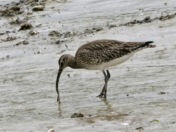 Saturday 08 May. A SE forecast had me thinking of seawatching but heavy rain rather put me off going to Seaford. I met Frank Lambert at Widewater just before 6am and we sheltered rather unsuccessfully for a couple of hours before giving up, rather drenched with the wind half way around to SW. In very difficult viewing conditions, not helped by trying to hold up an umbrella (Frank was in the more sheltered side of the beach hut), I saw 3 Common Scoter and single Whimbrel, Sandwich Tern and dark morph Arctic Skua flying east. About 6 Fulmars and 30 Gannets were off-shore while 3 Oystercatchers, 14 Whimbrel and about 75 small waders flew west along the beach. The latter were in two tight groups and were all or mostly Dunlin. After drying out back home Megan and I took Cookie to Brooklands which was quite sheltered and dry. We saw a drake Gadwall, 3 groups of Mallard ducklings (12, 8 and 7 in ascending size) and a Cetti's and 2 Reed Warblers. At low tide I took Cookie down to the Adur where by the airport waders were performing by numbers: 1 Redshank, 2 Oystercatchers, 3 Common Sandpipers and 4 Whimbrel. Ringed Plover didn’t get the memo and 9 turned up.