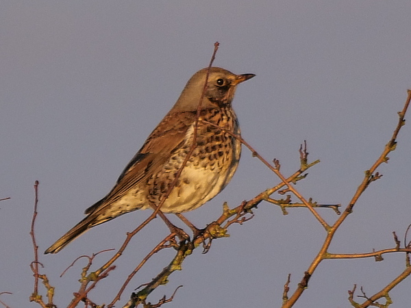 Friday 14 January. Cookie and I met David Buckingham at the Beeding Hill NT car park at 08:15 and we spent until 11:50 walking the usual triangle (Monarch's Way, up to Truleigh Hill and back along Room Bottom). I saw a below winter average 28 species including 3 Stock Doves, Peregrine, 2 Ravens, 17 Skylarks, 3 Fieldfares, 7 Stonechats, Chaffinch, just 2 Goldfinches, Corn Bunting and 8 Yellowhammers.