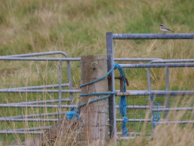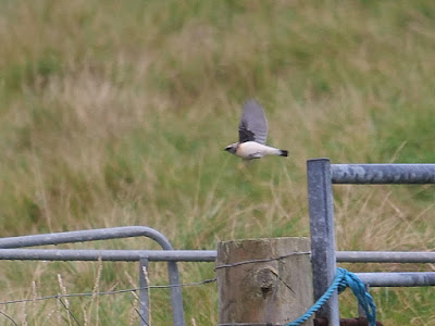 bright wheatear fly past and land on a gate ahead of us – an absolutely